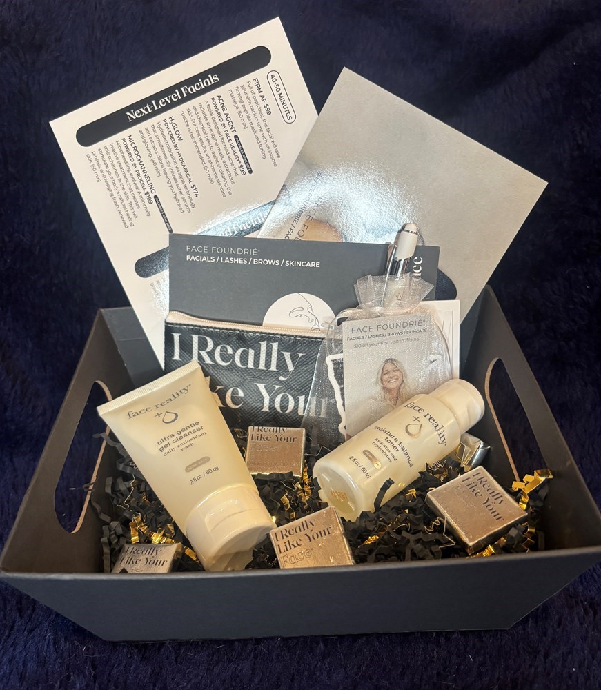 1 Focused Facial $79 Value Face Reality Gentle Cleanser Face Reality Toner Face Foundrie Pen, Stickers, Chocolates